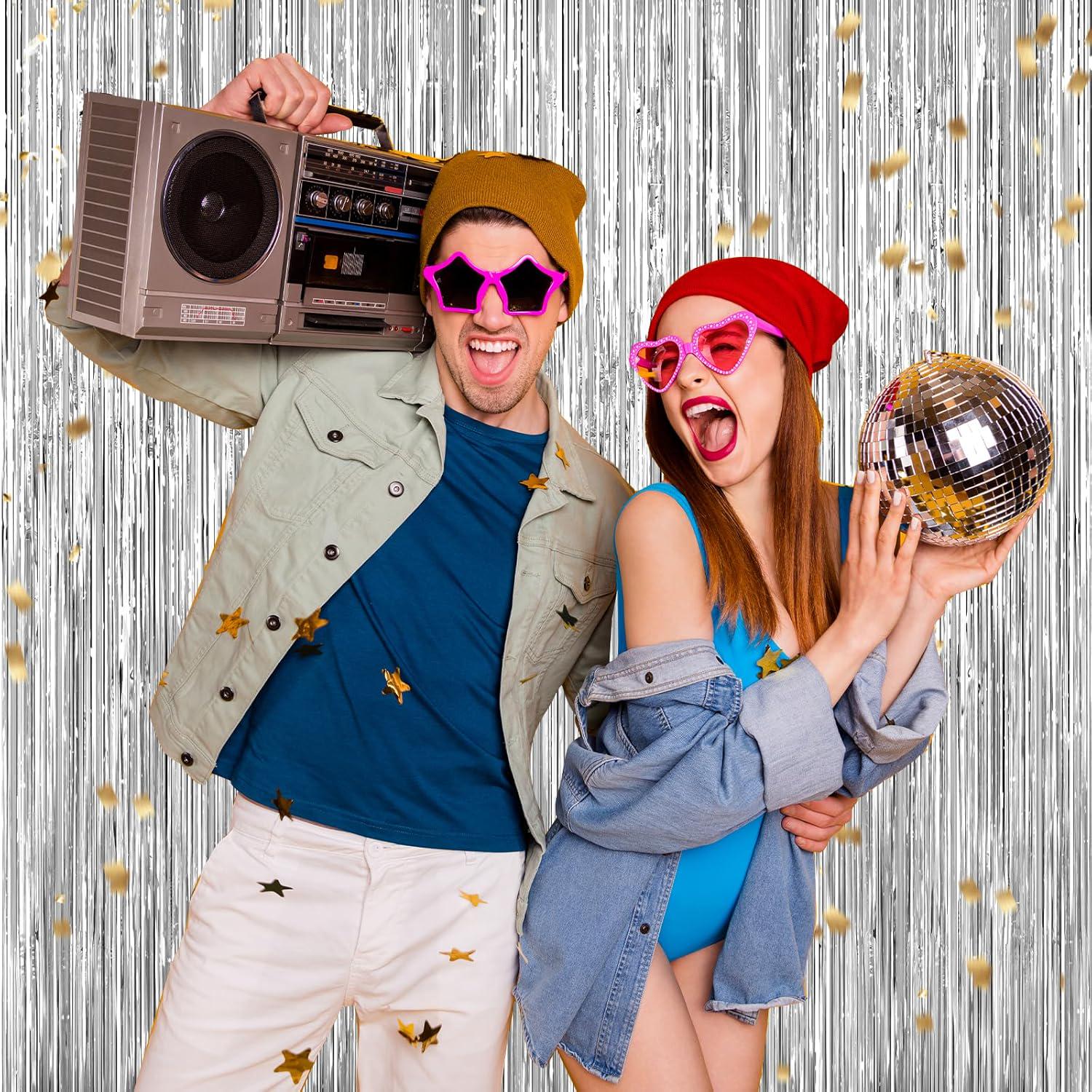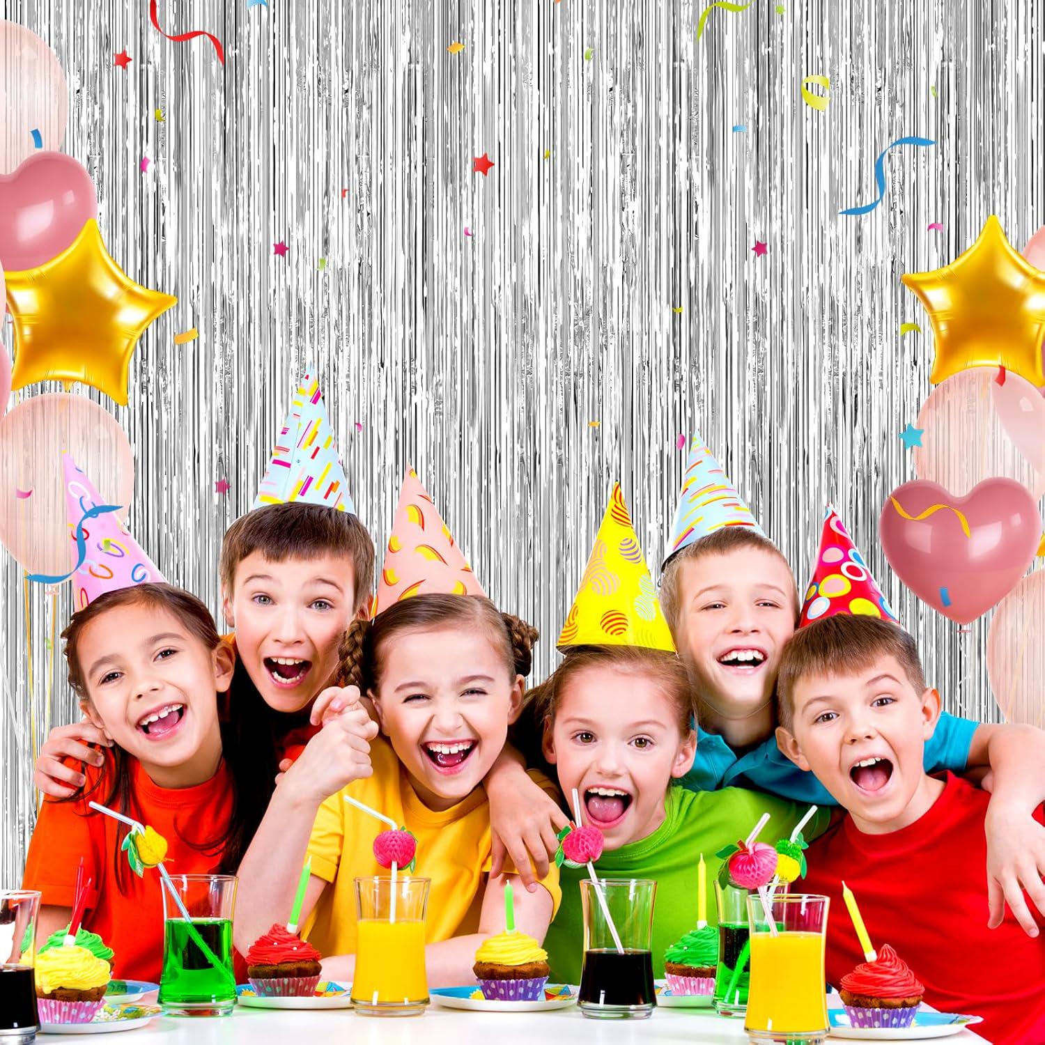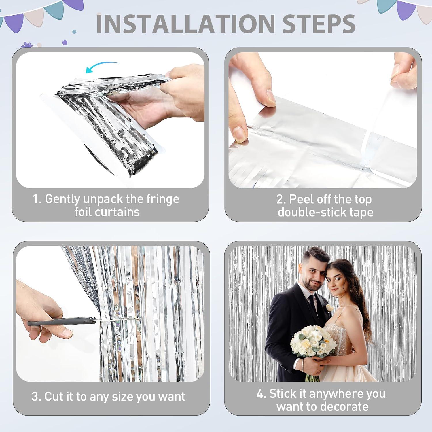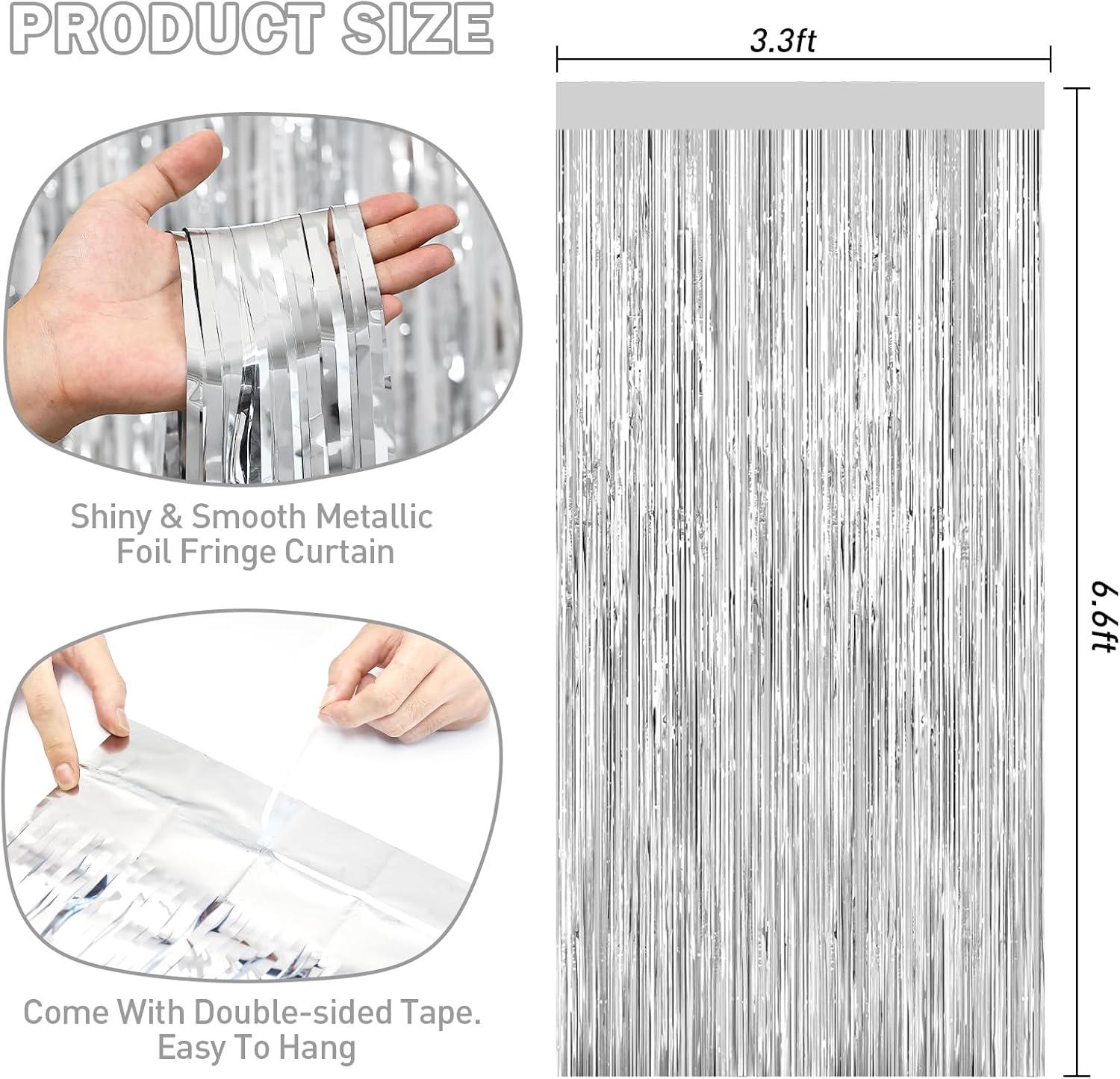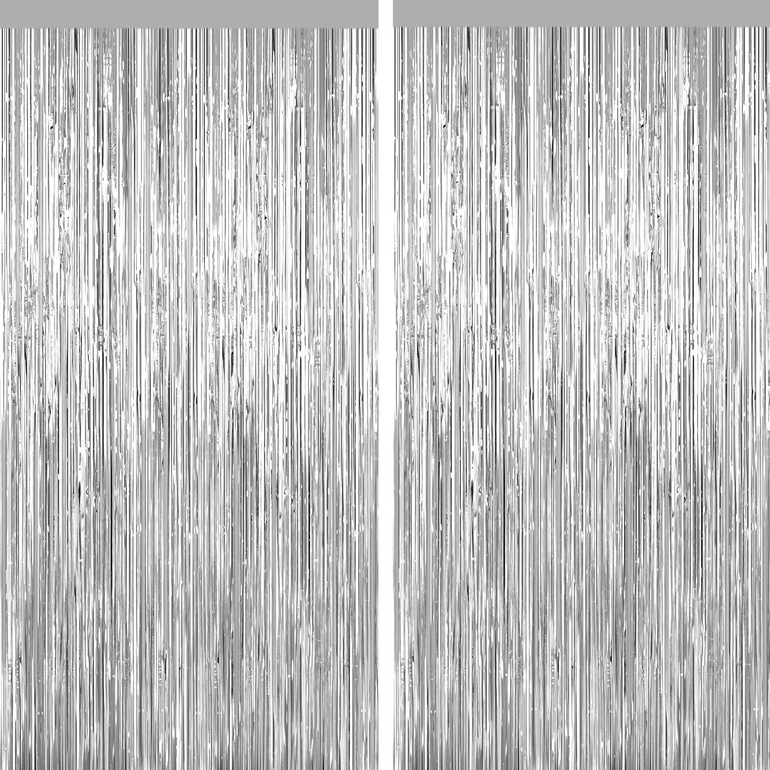 Create an instant party atmosphere with these silver foil fringe curtains, perfect for doors, walls, and photo backdrops. Each pack includes 2 shimmering curtains that add sparkle to birthdays, bachelorettes, graduations, Christmas parties, disco nights, bridal showers, and more.