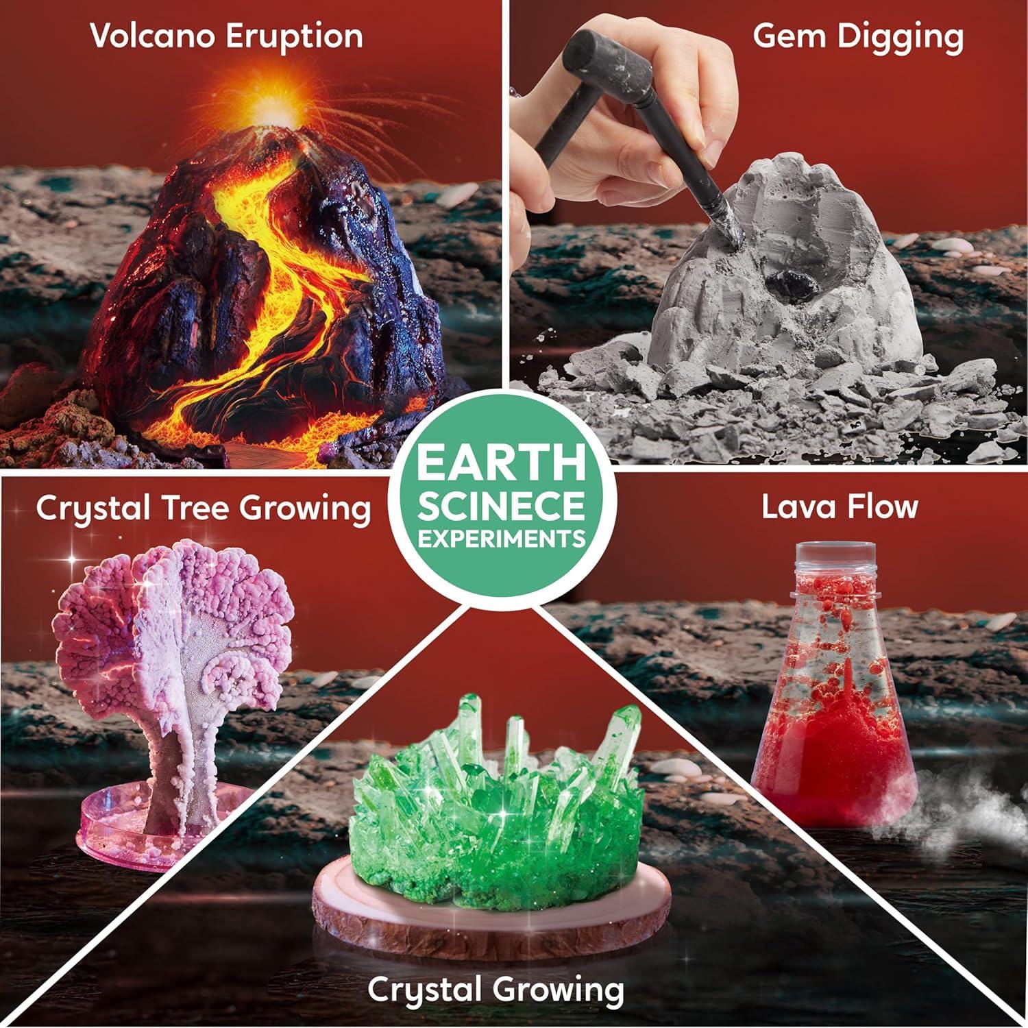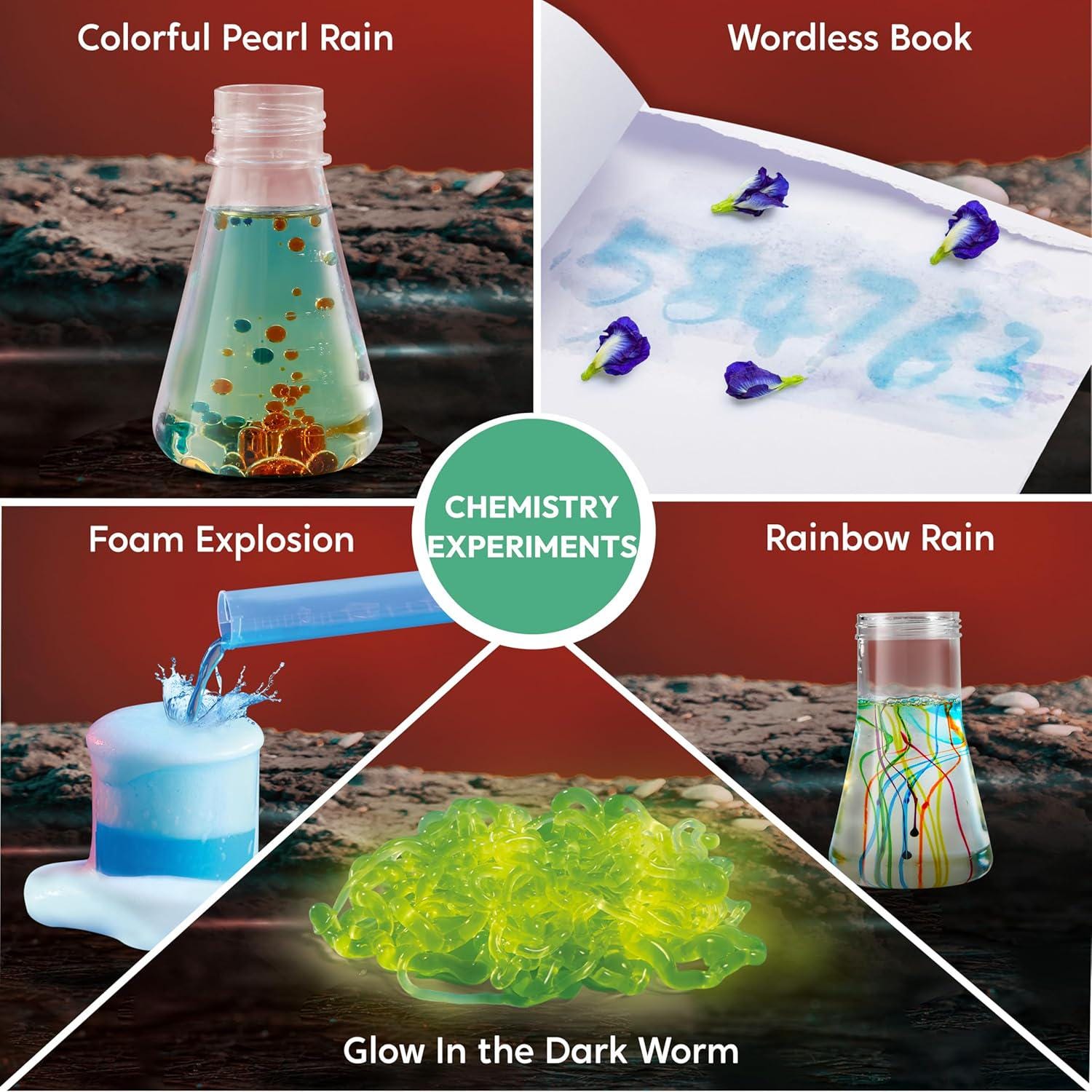This interactive STEM kit includes 85+ hands-on experiments, including erupting volcano projects, crystal growing, water reactions, color mixing, and more.