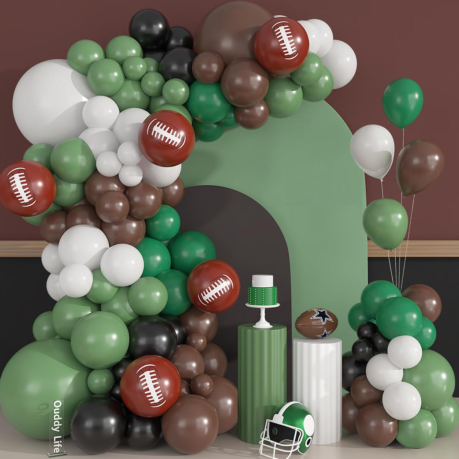 The color mix and printed football balloons make it easy to create a bold sports look.
