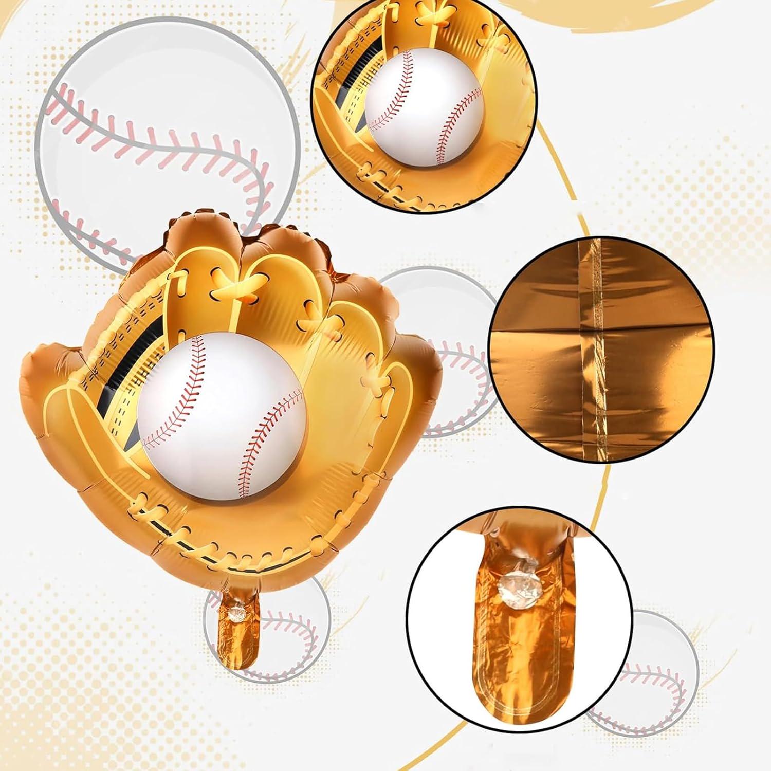 Includes 18-inch baseball and glove-shaped balloons for a bold visual setup.