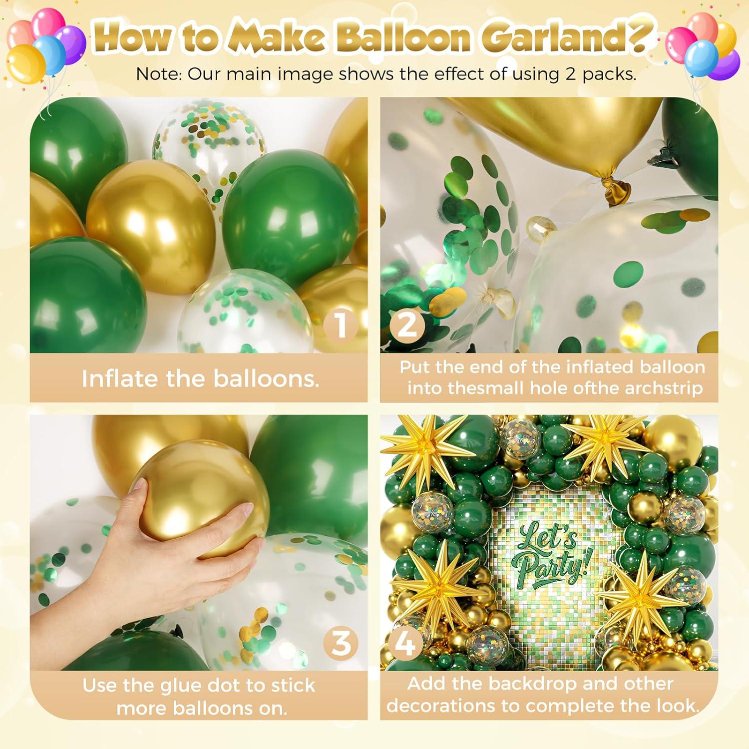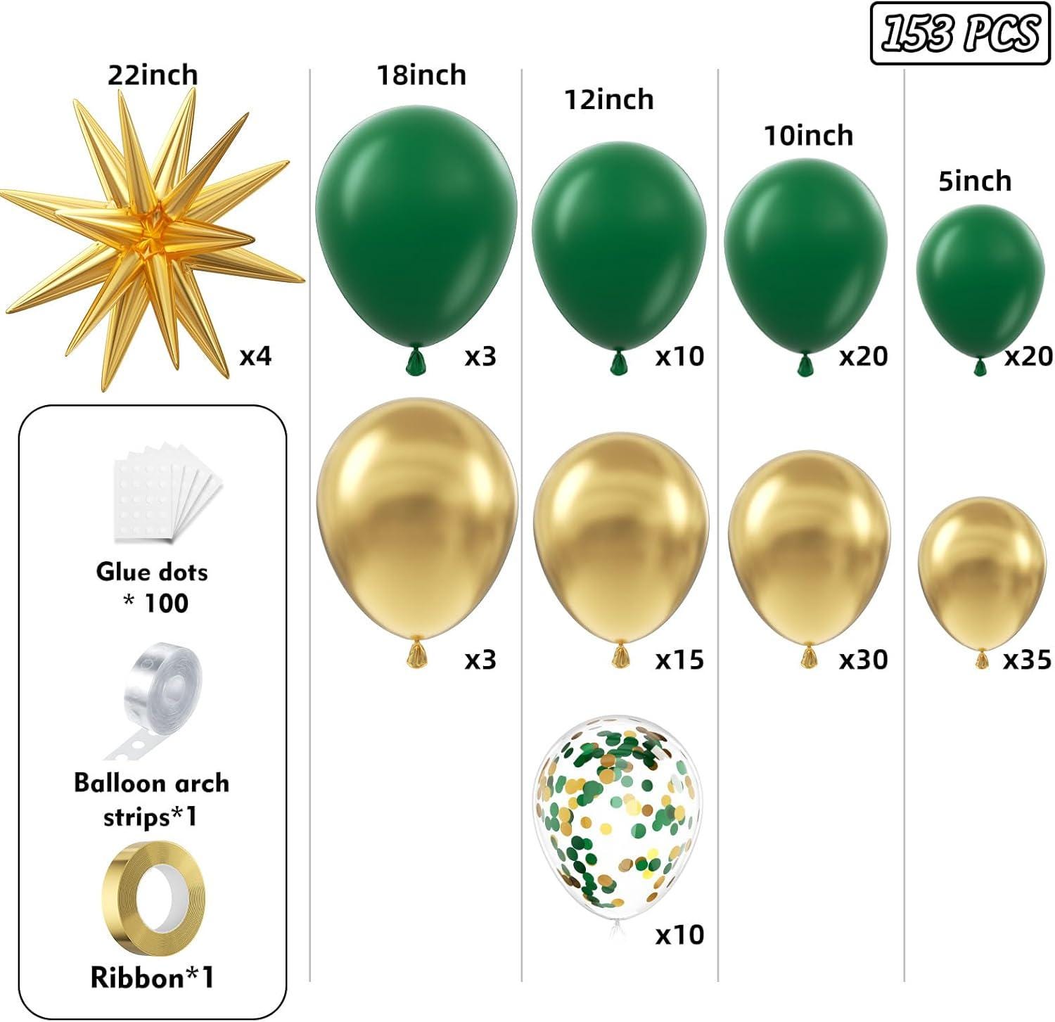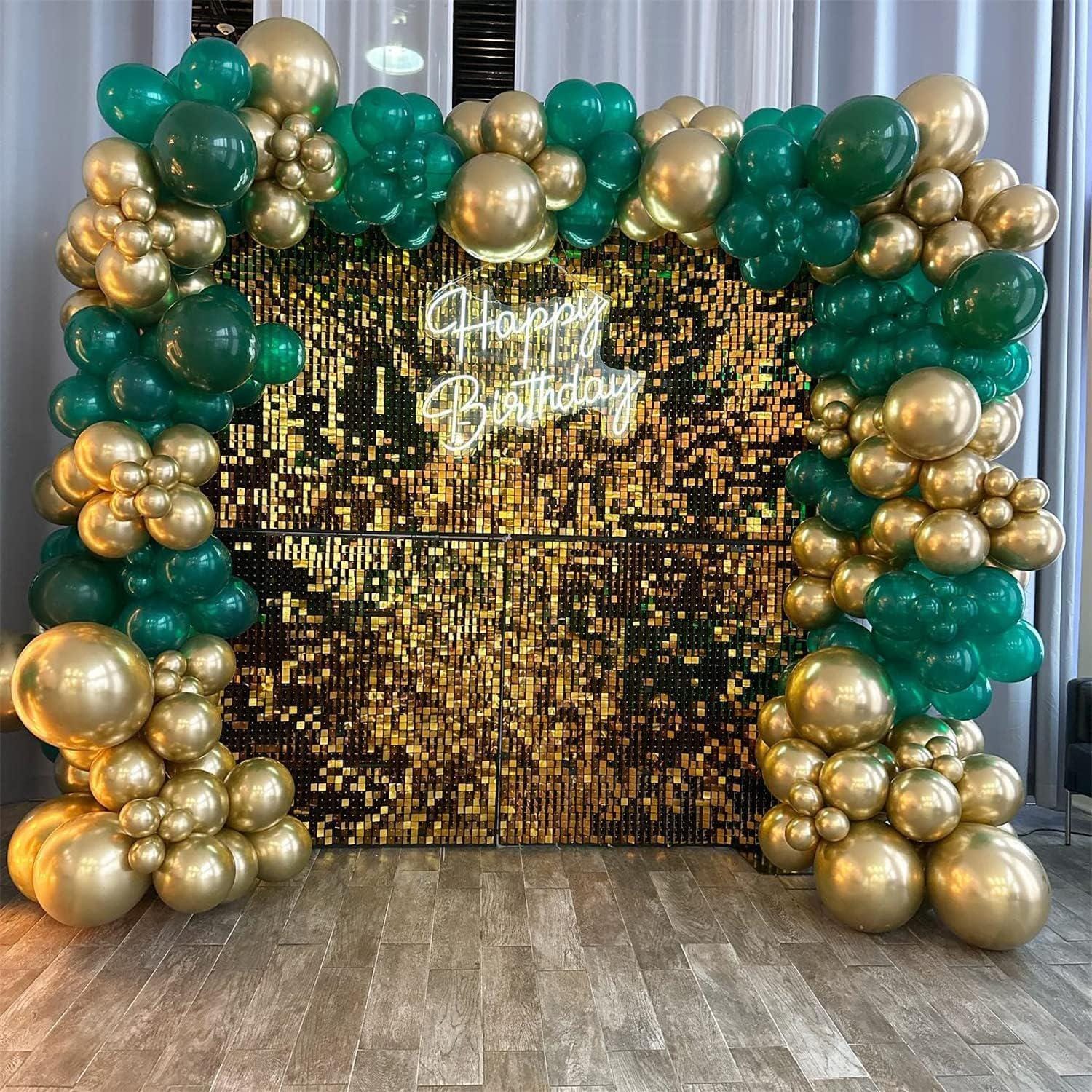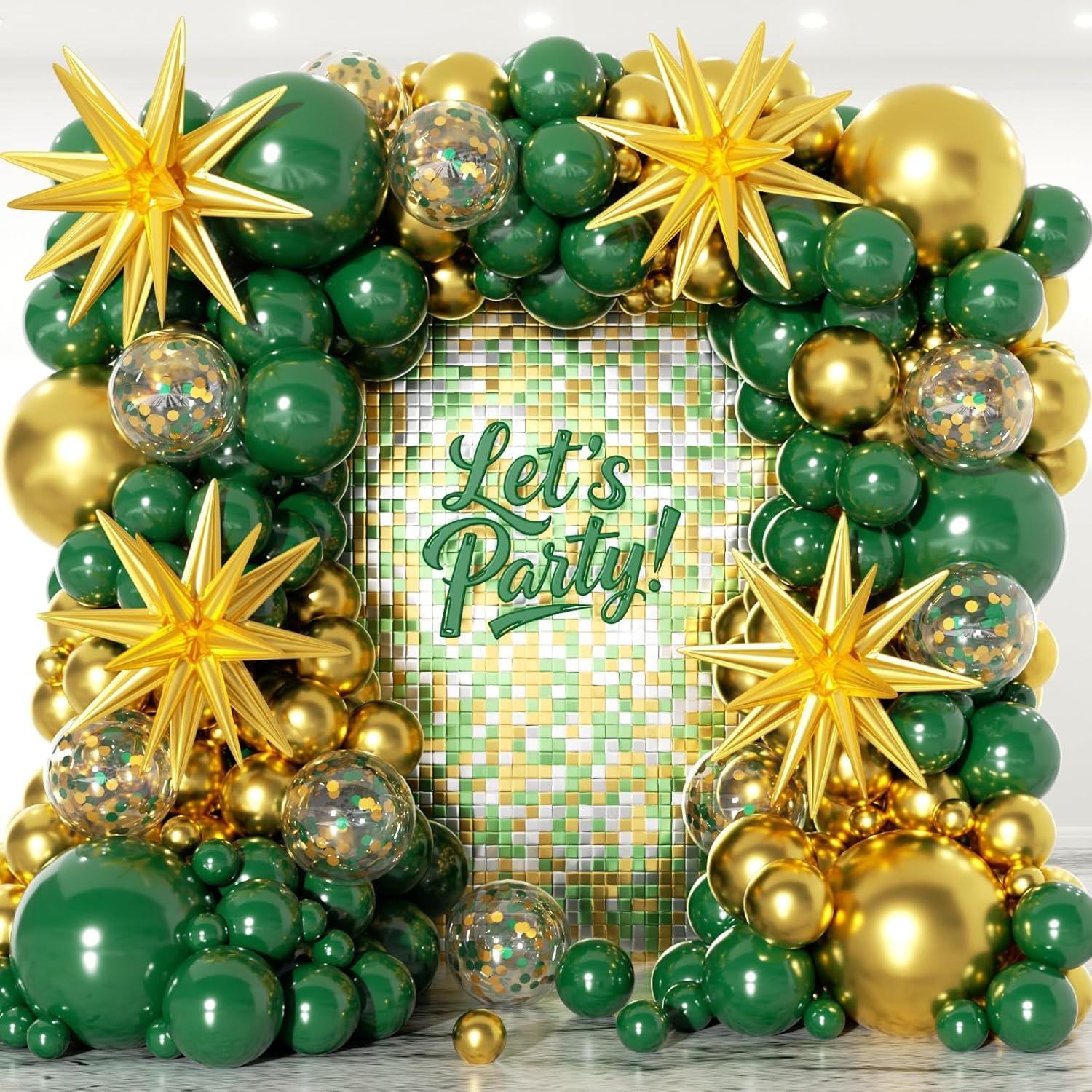 Beautiful green and gold balloon arch kit for parties and event setups.