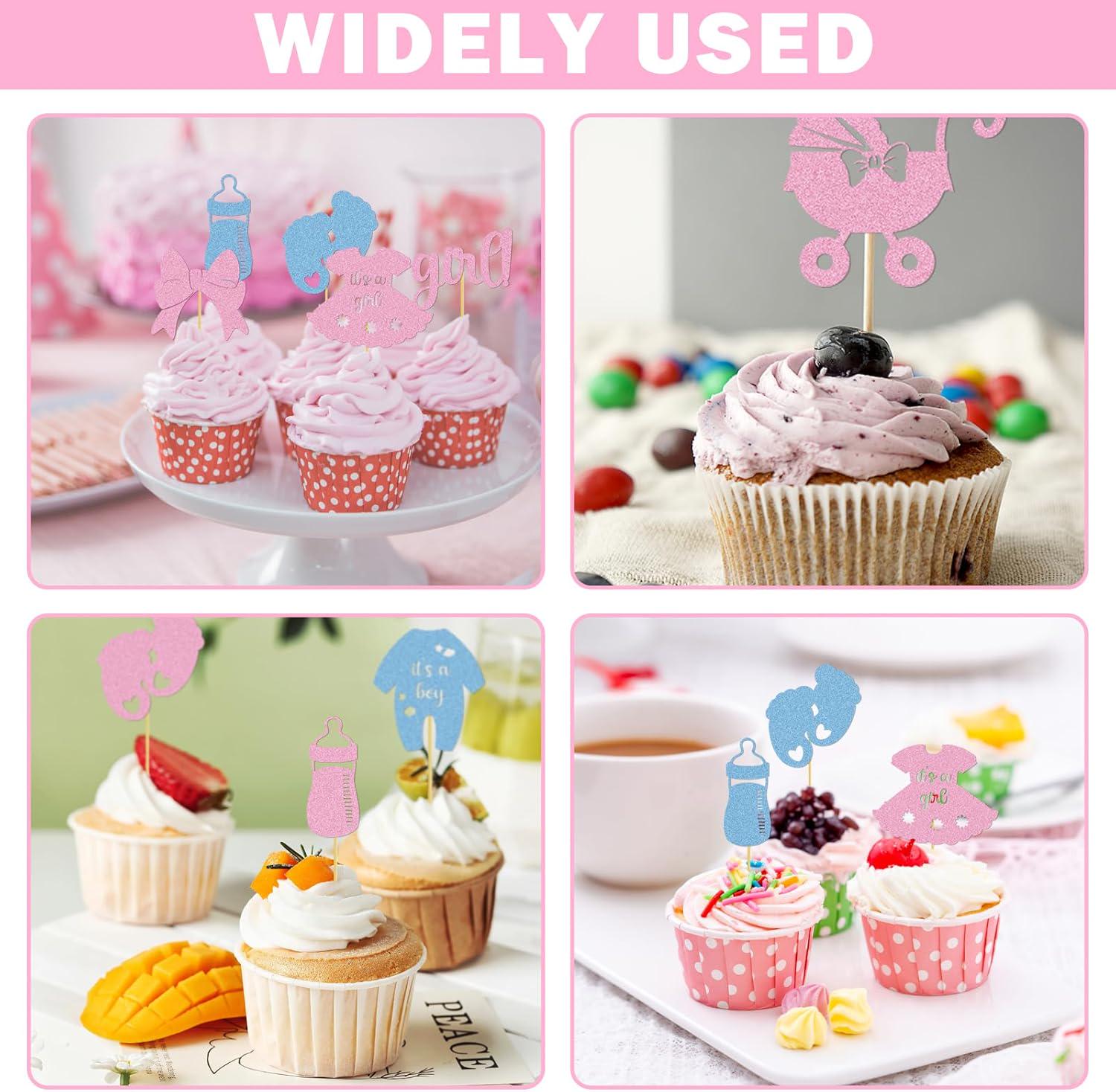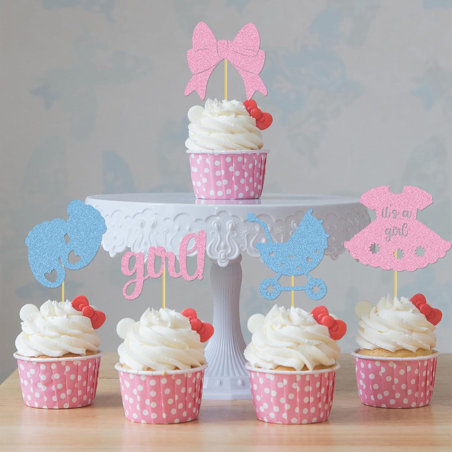 The pink and blue design adds a fun and sweet touch to cupcakes, cakes, and dessert tables.
