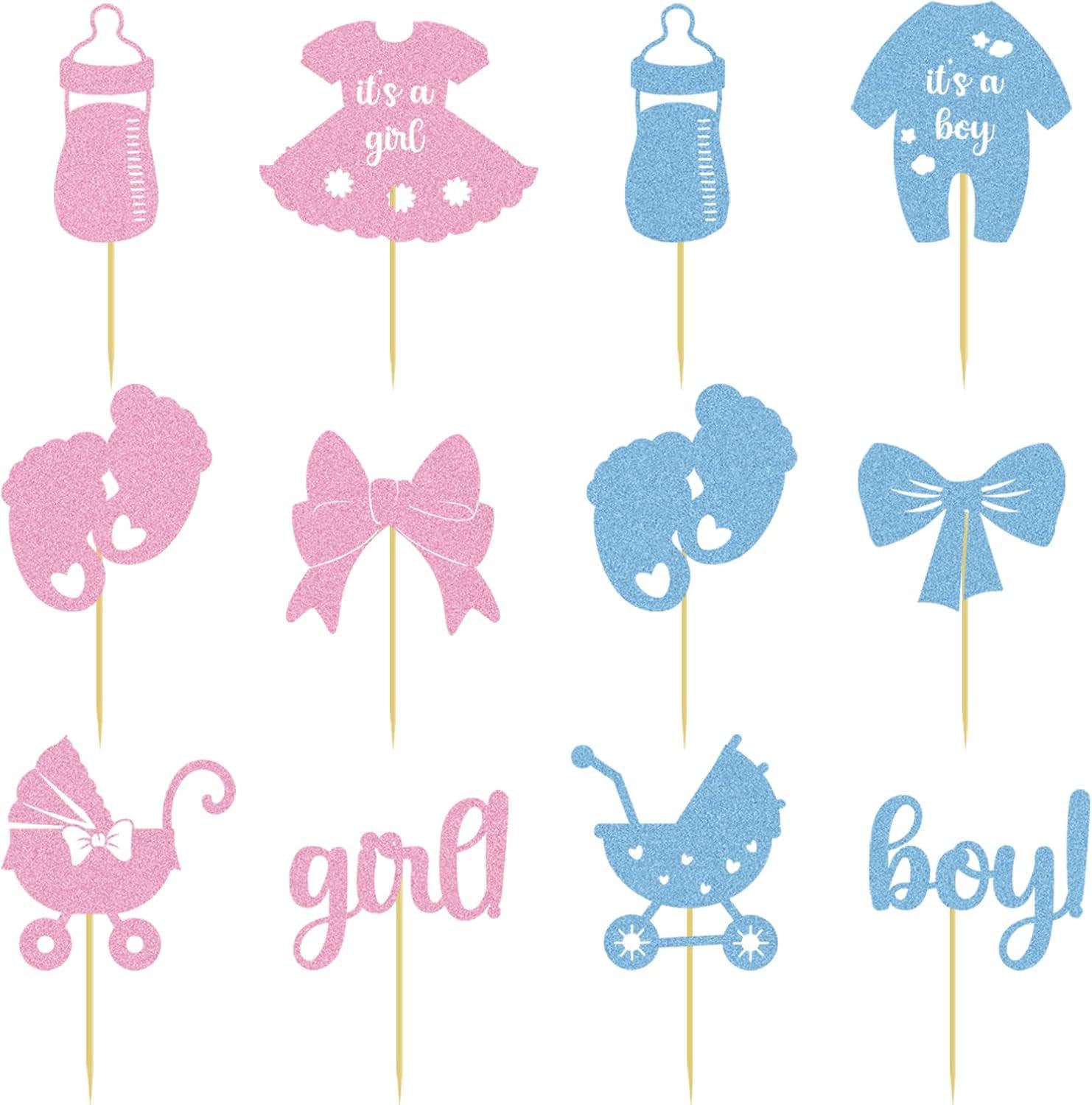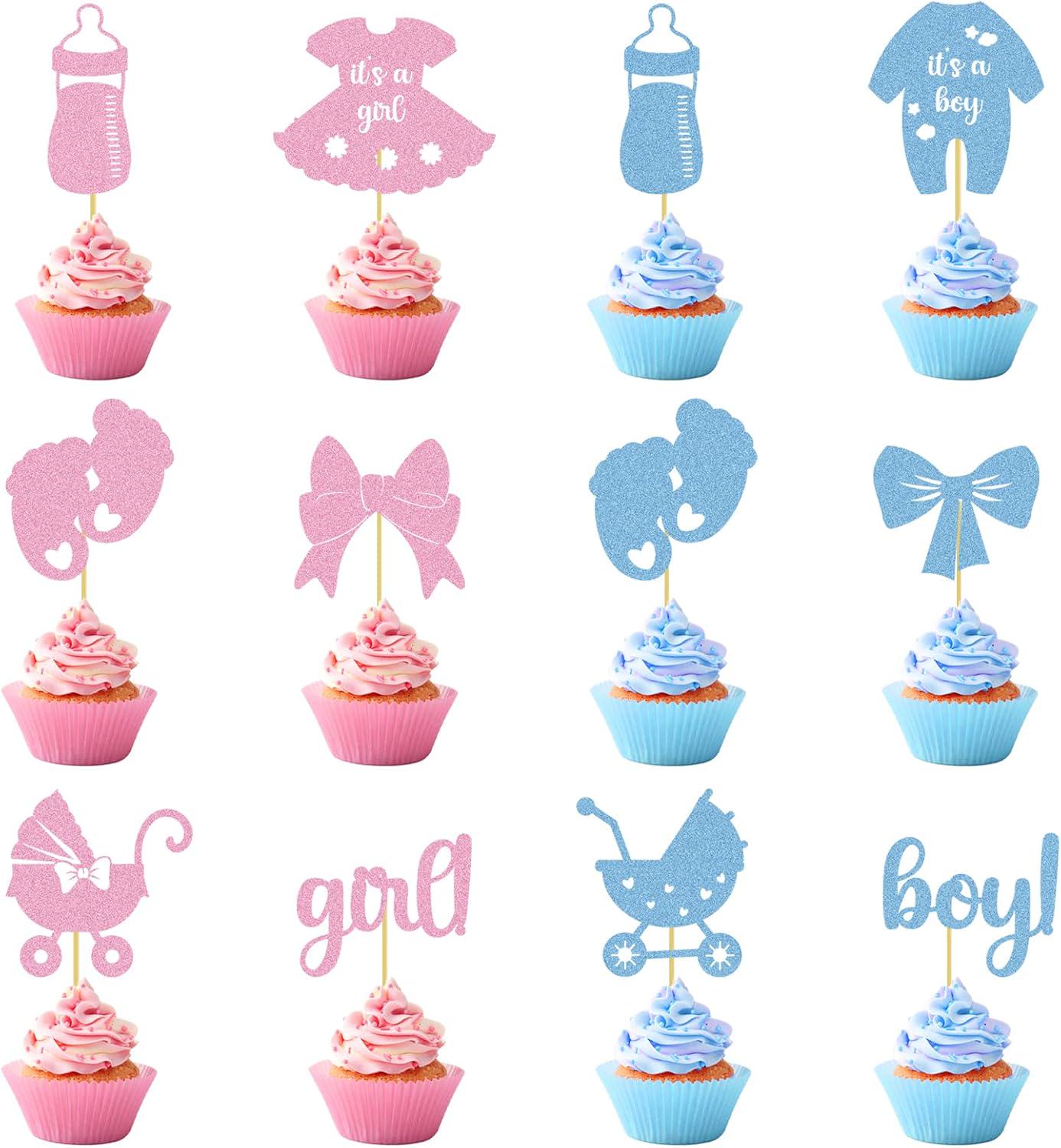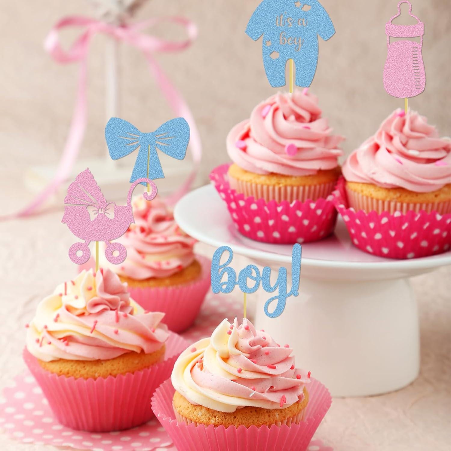 Cute cupcake topper set for gender reveal parties and baby showers.