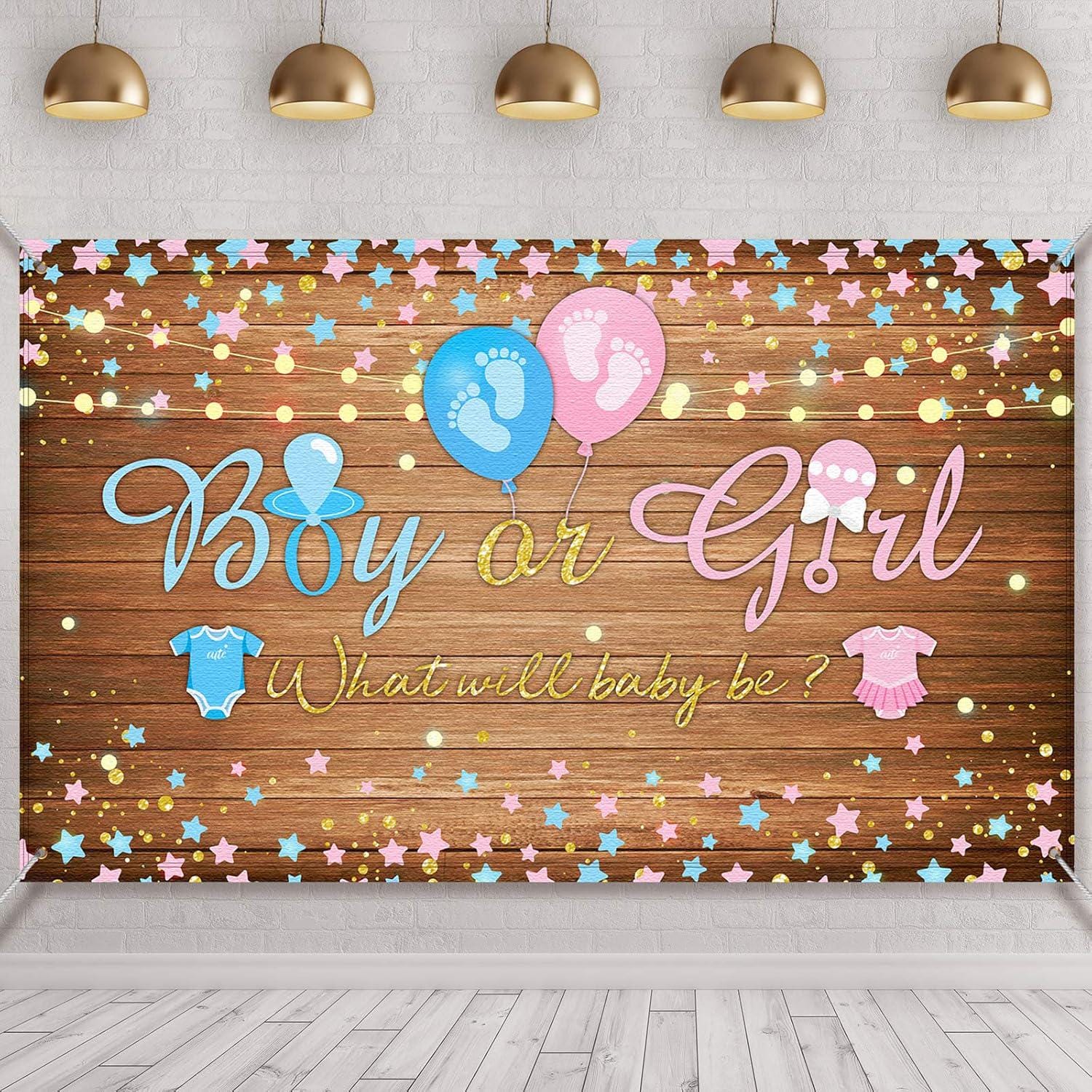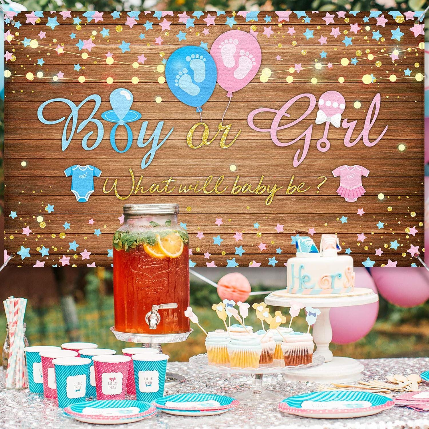 Cute gender reveal backdrop for baby showers and party setups.