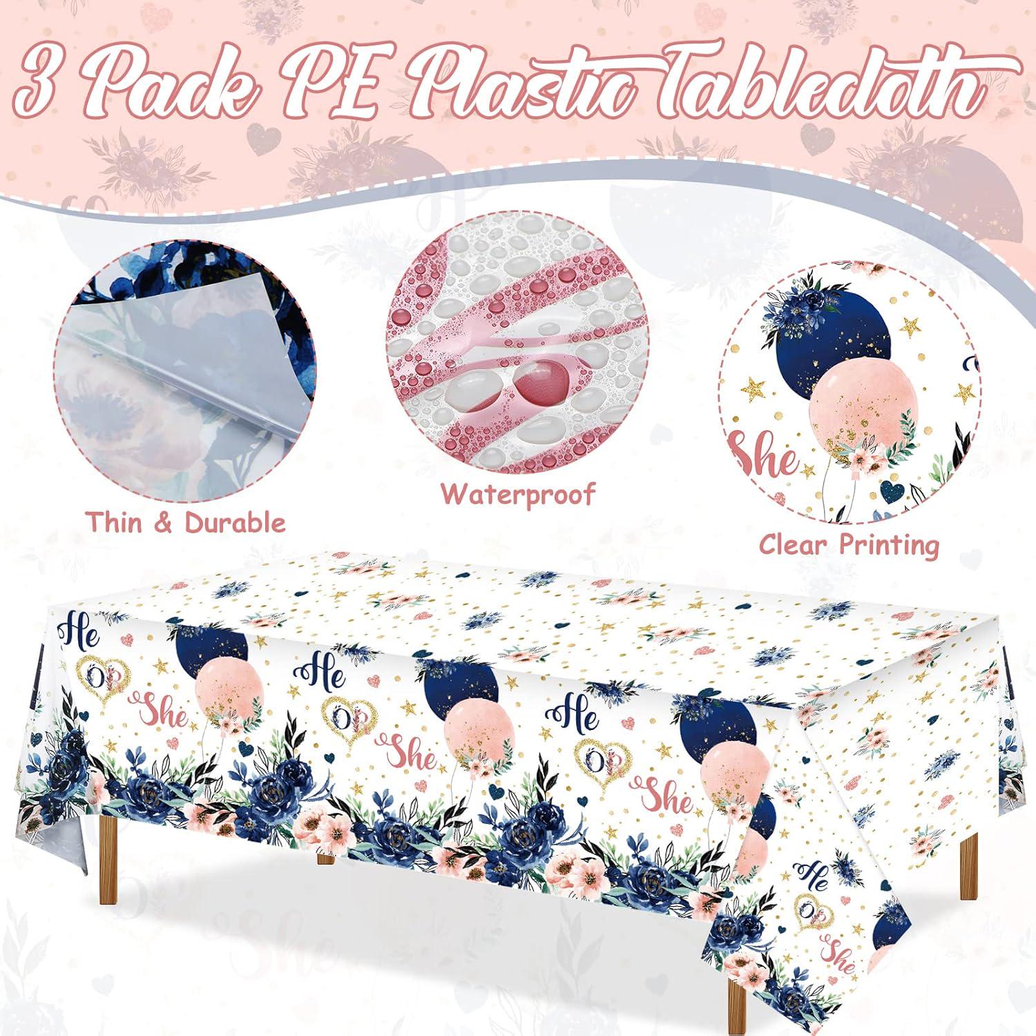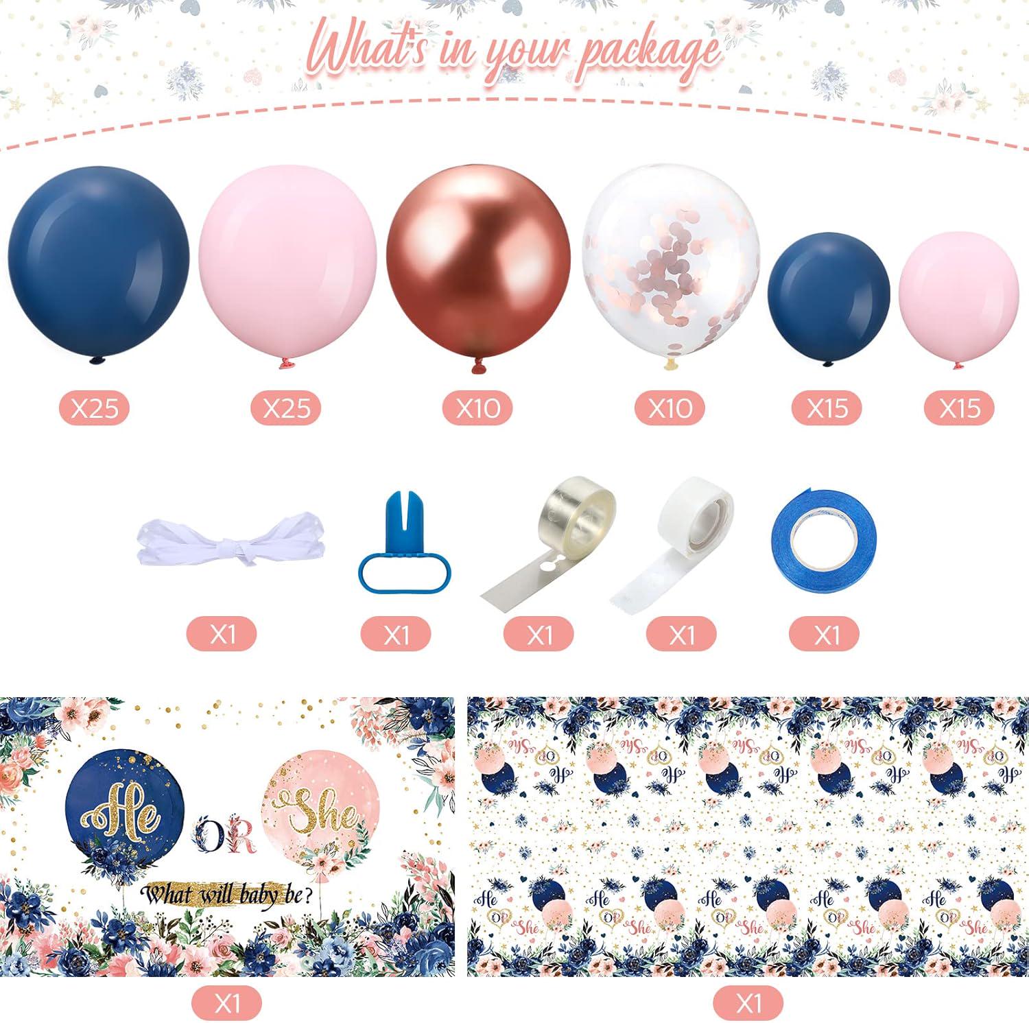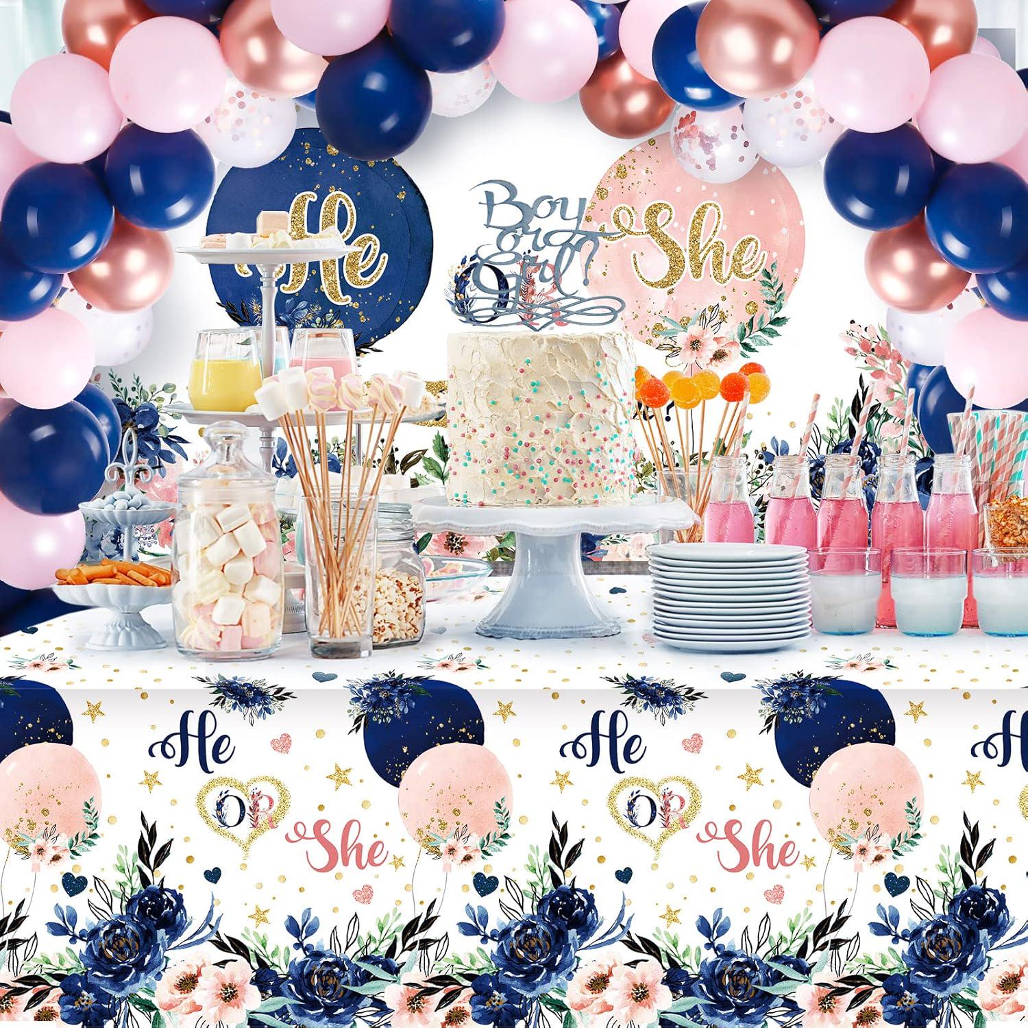 Includes balloons, banner, table cover, and decorations for a complete gender reveal setup.