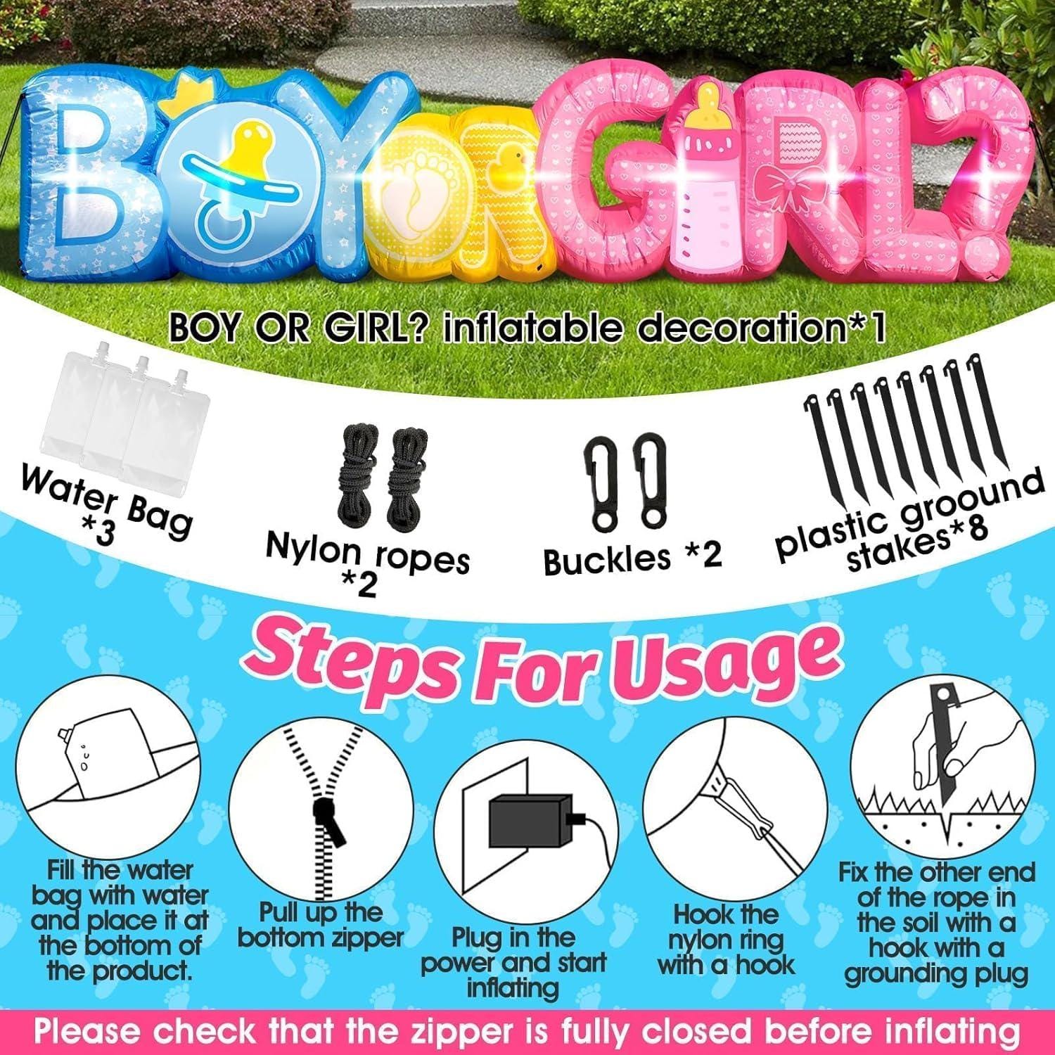Large gender reveal decoration set for baby showers, birthdays, and outdoor party setups.