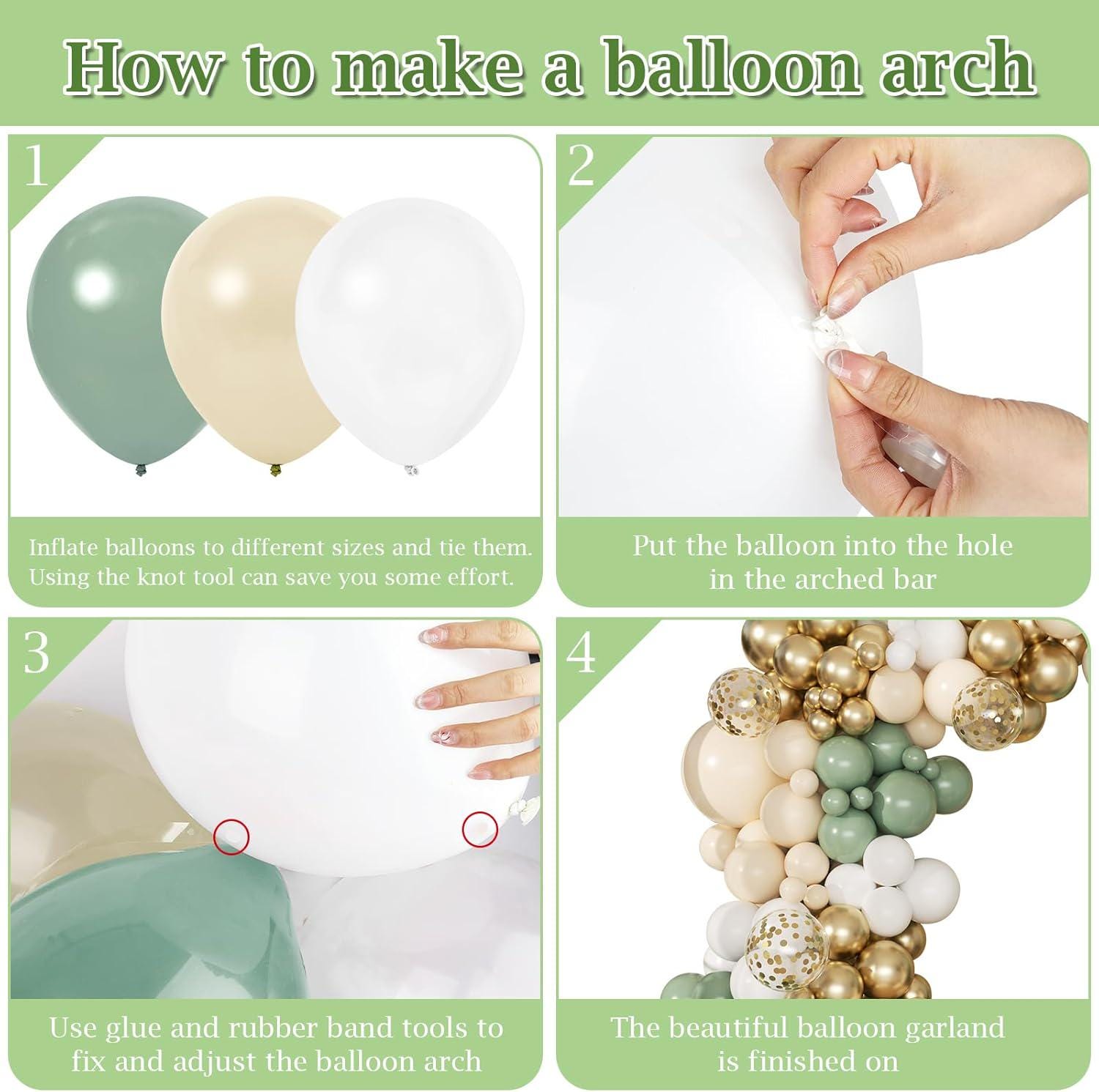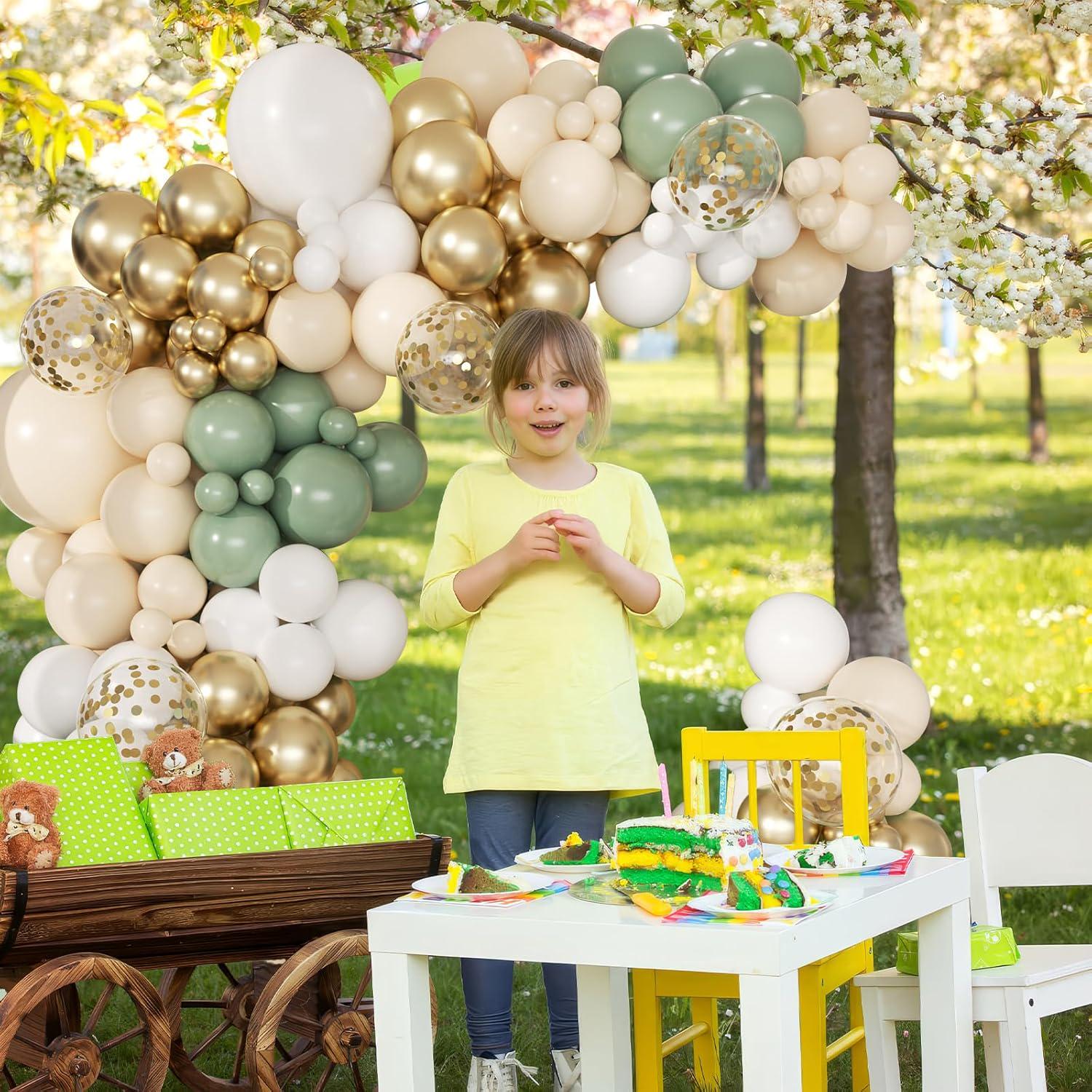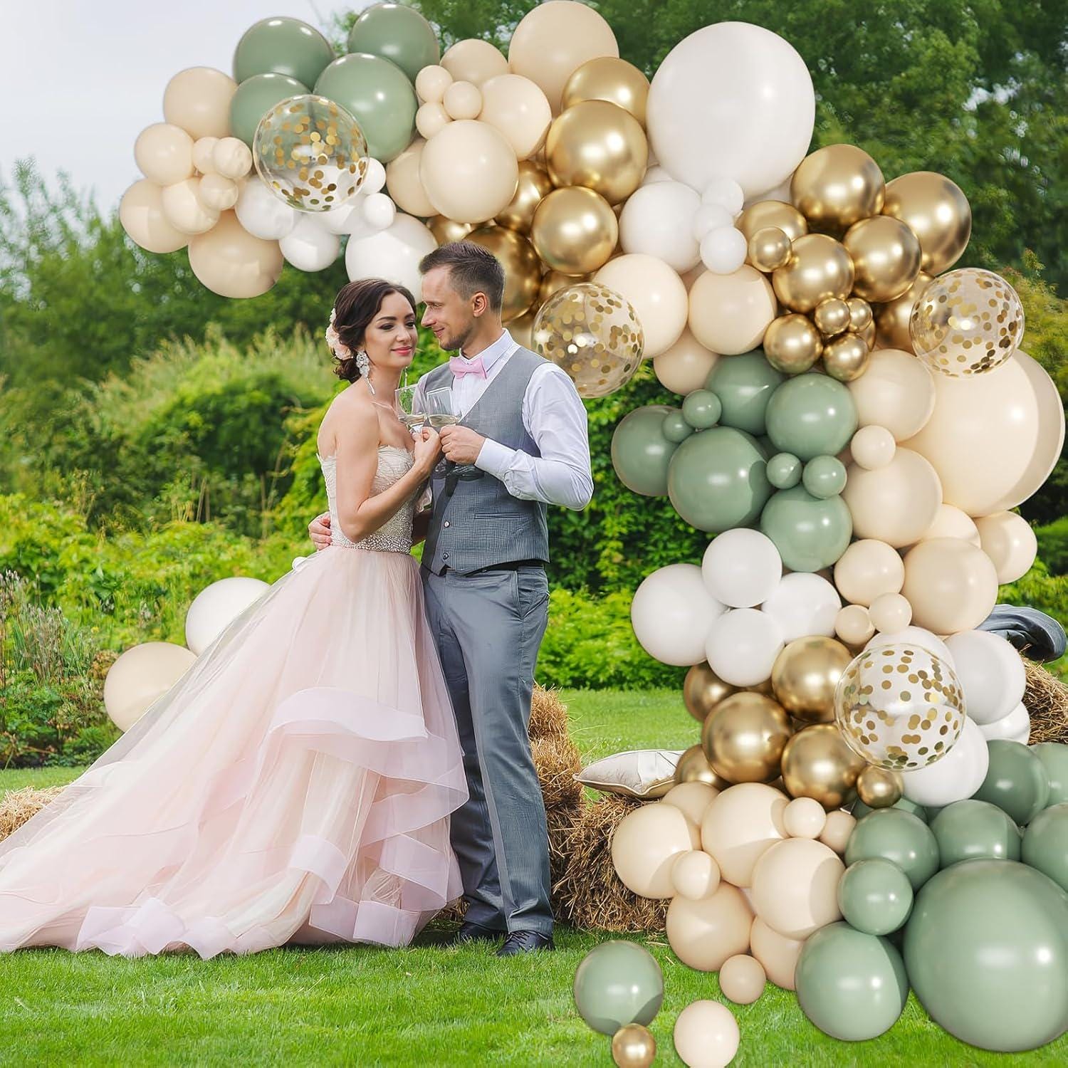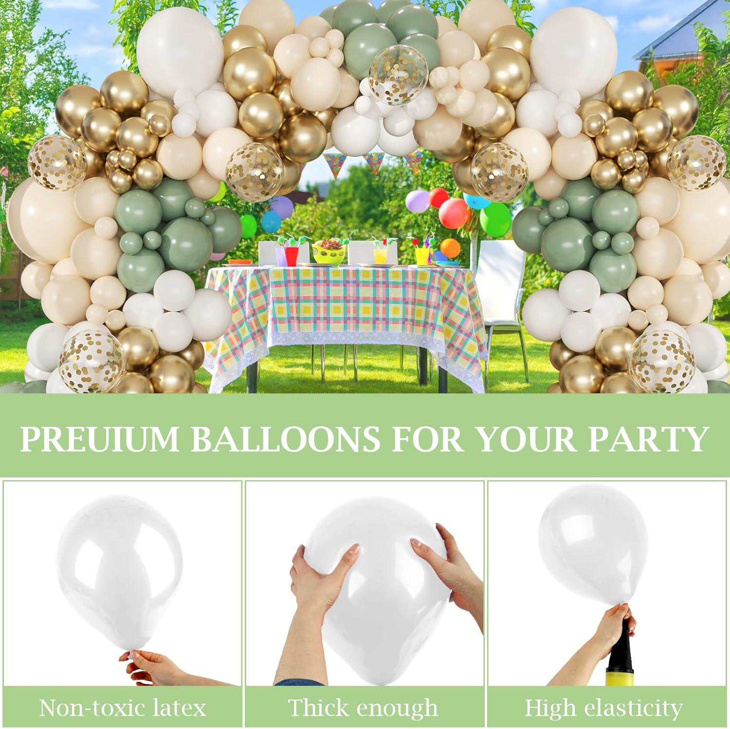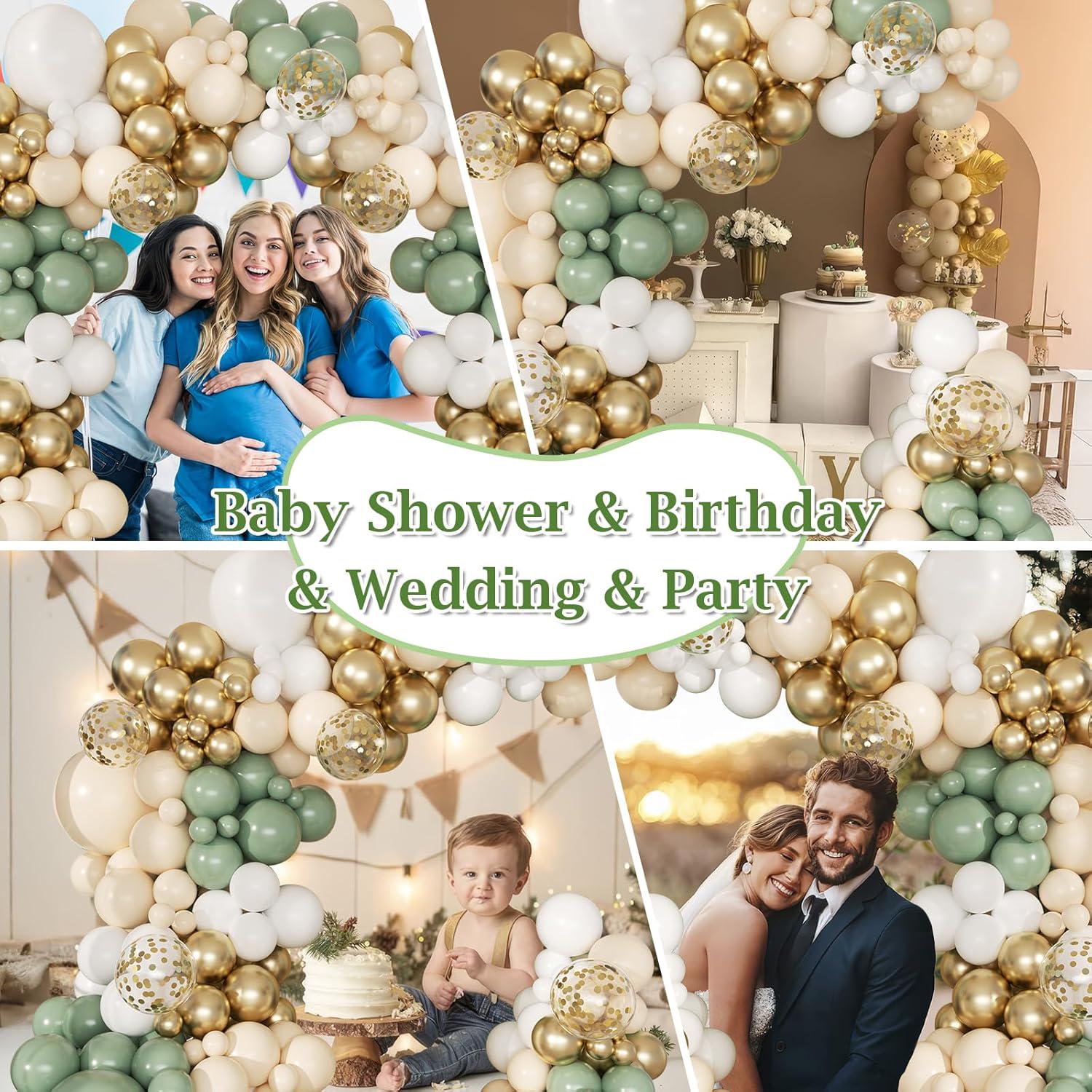 This 168-piece sage green balloon arch kit is designed for clean, minimal setups with a refined look. The combination of muted green, soft neutrals, and metallic gold creates a calm, upscale backdrop that fits effortlessly into modern event styling.