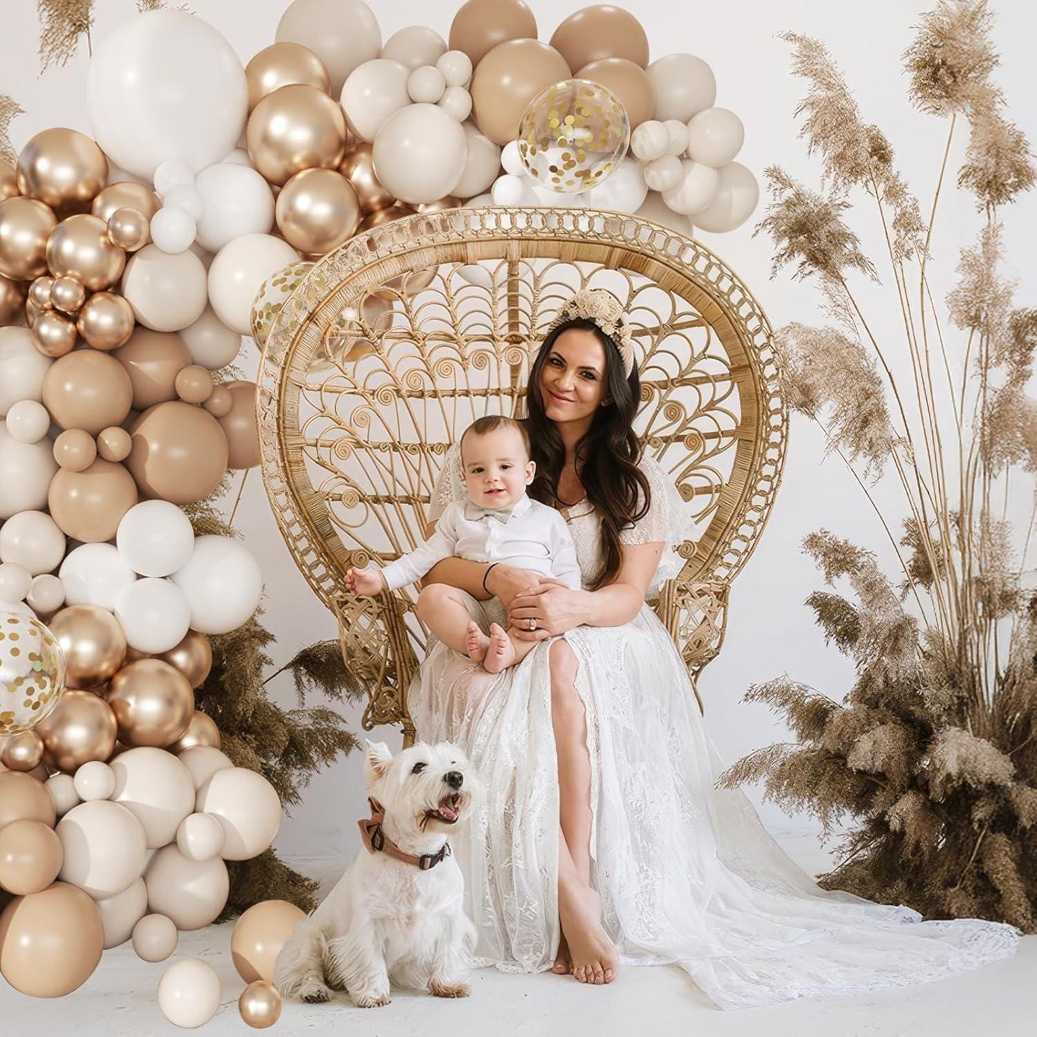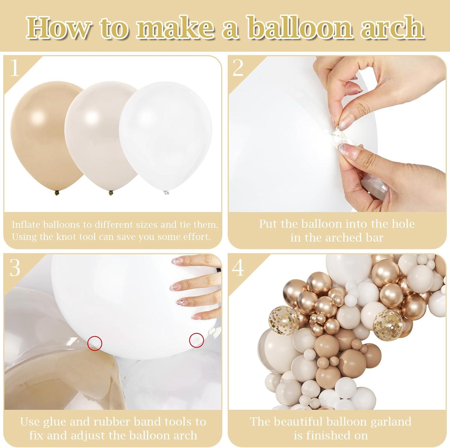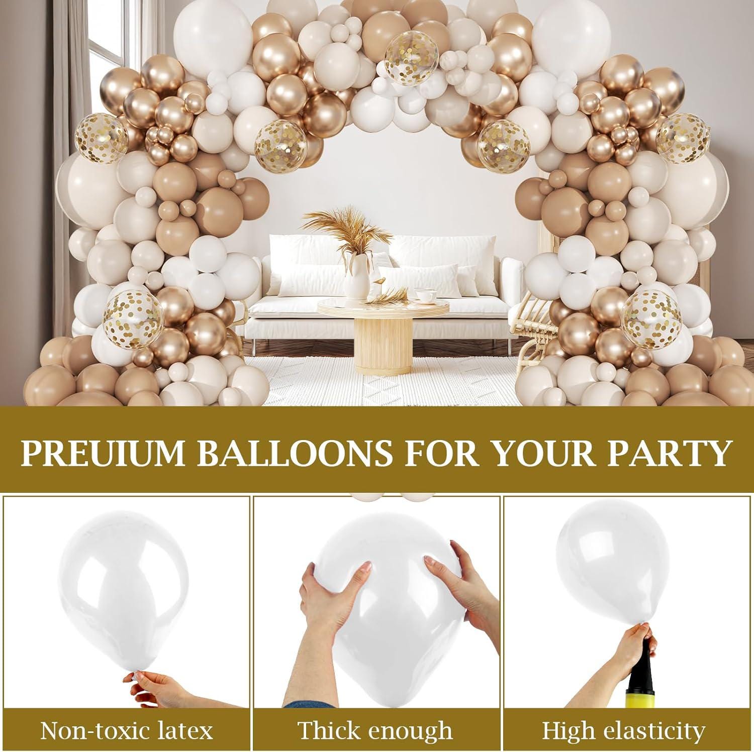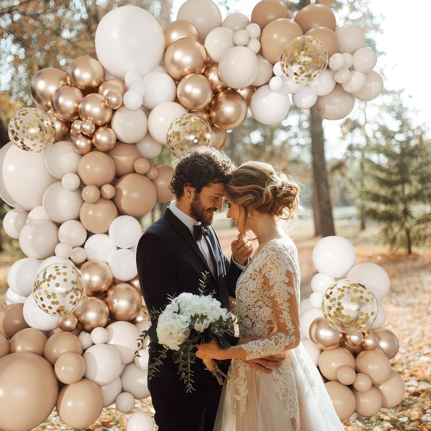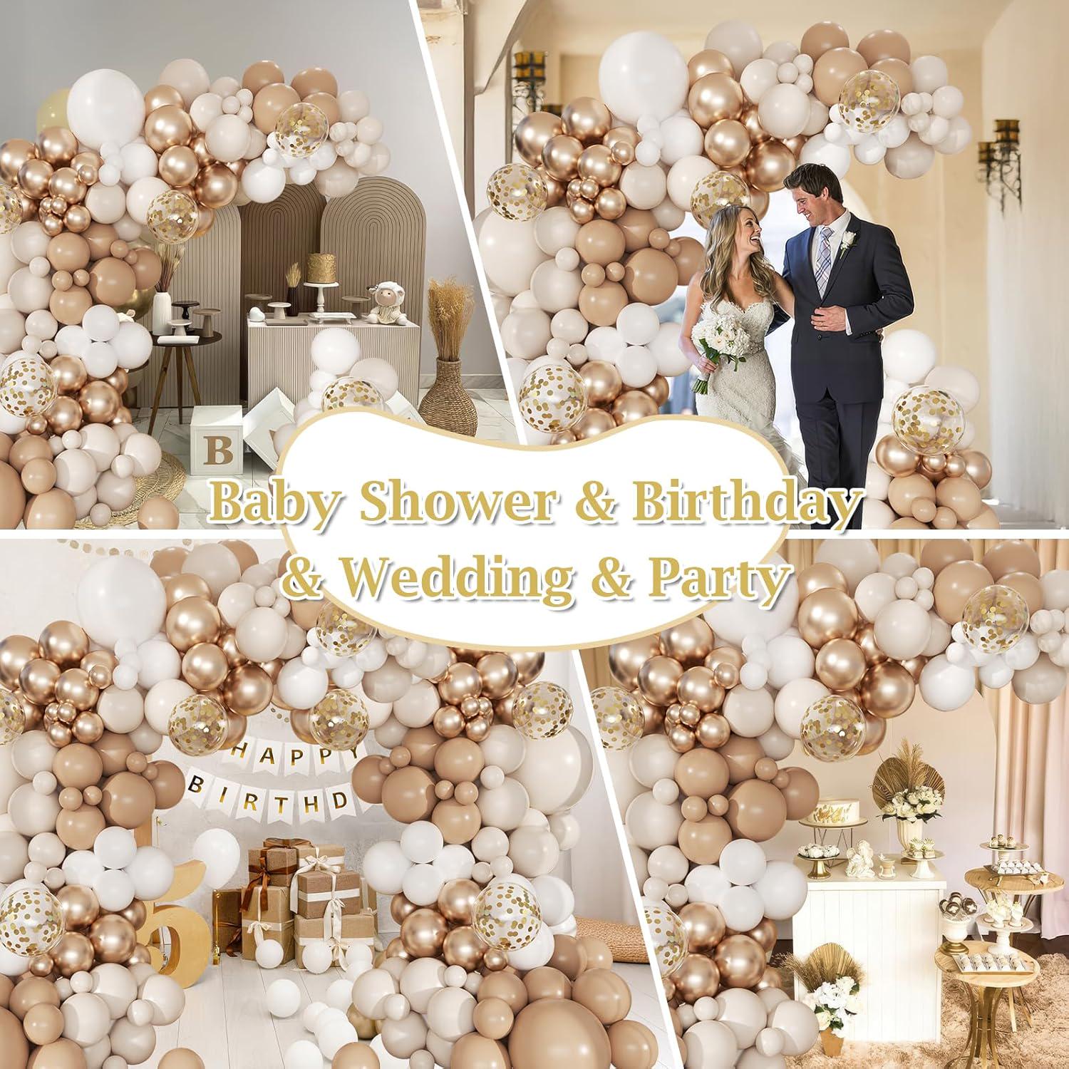 This 168-piece neutral balloon arch kit is designed to create a soft, balanced backdrop that fits any event. The blend of beige, cream, and metallic gold tones delivers a warm, modern look without overpowering your space.