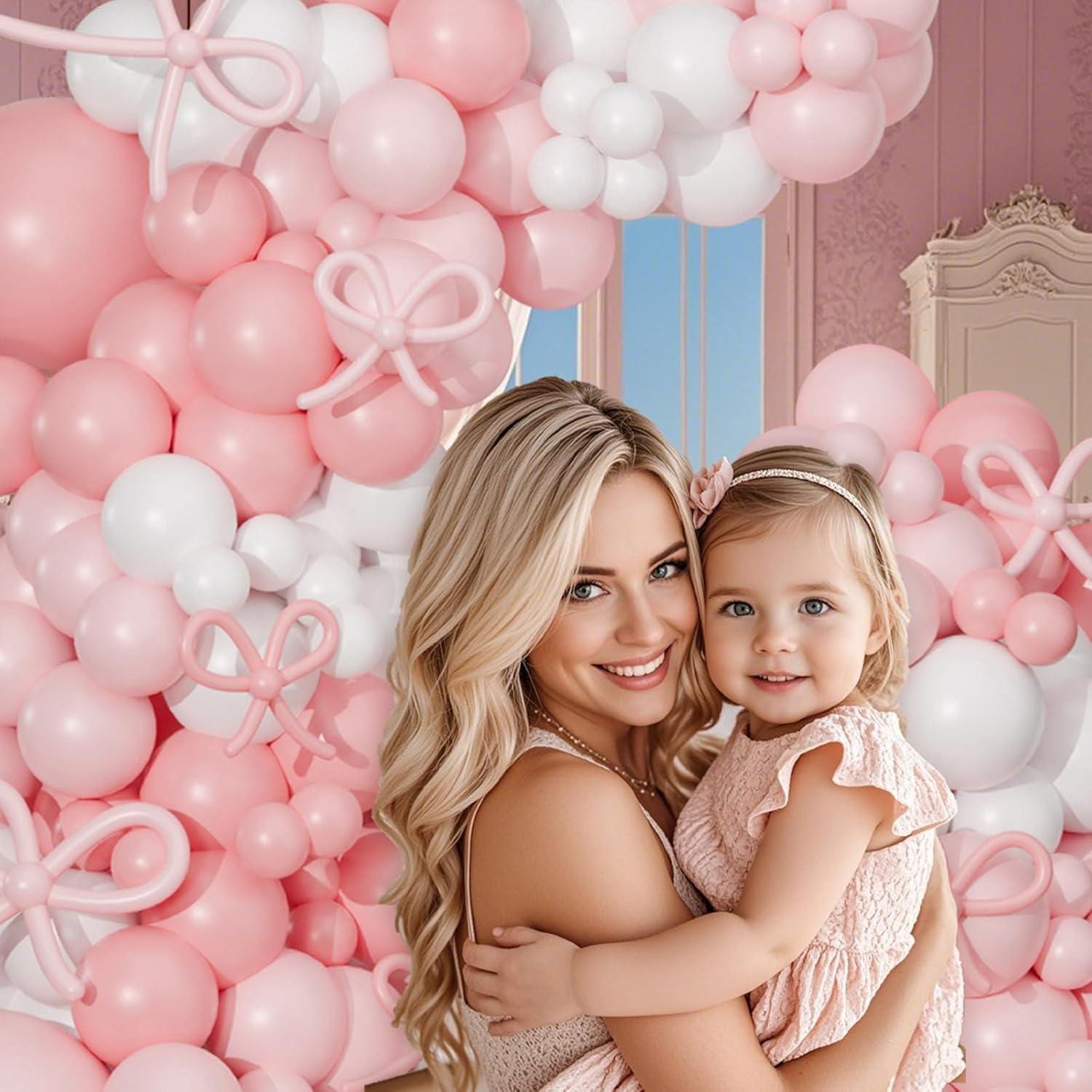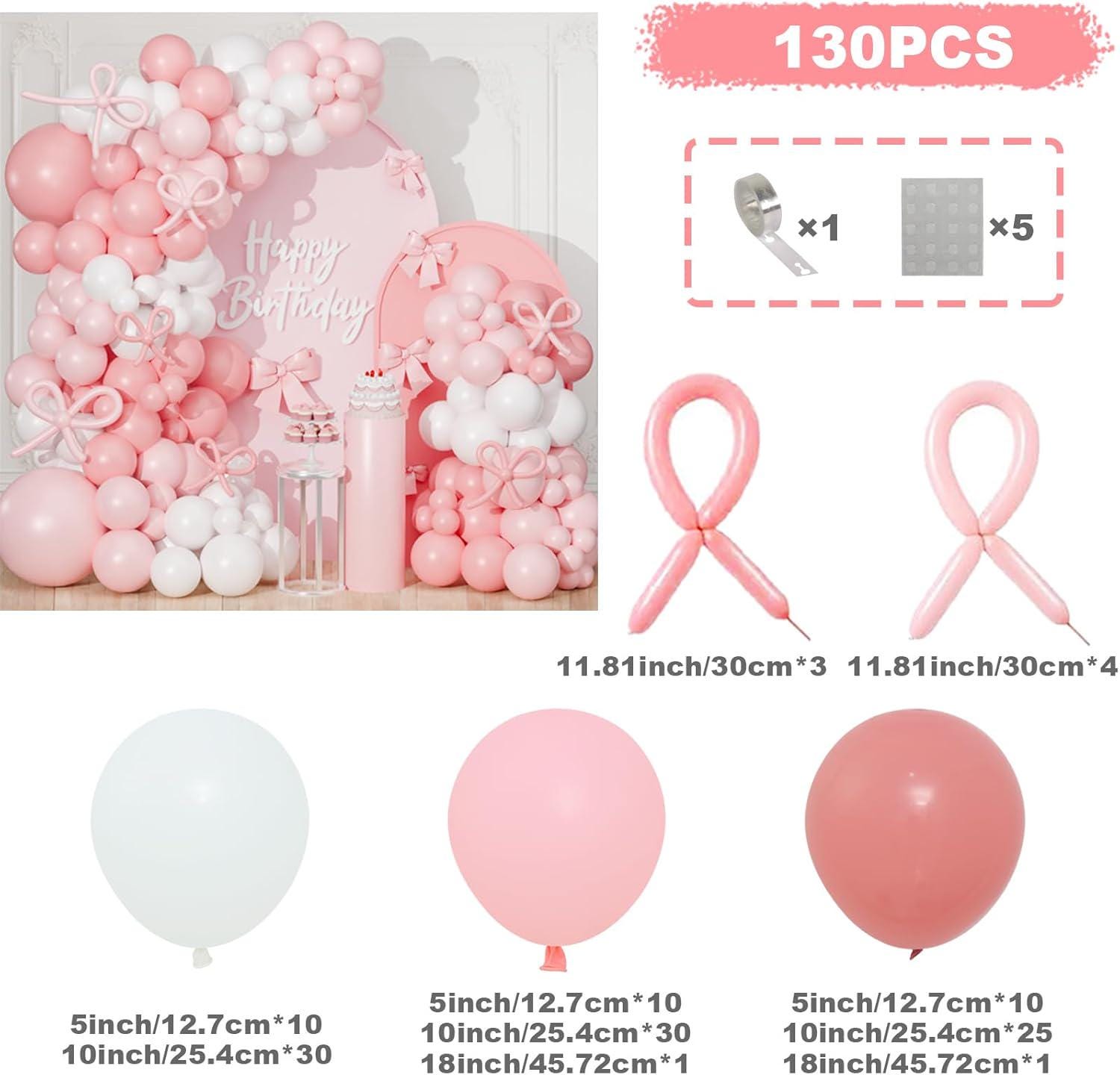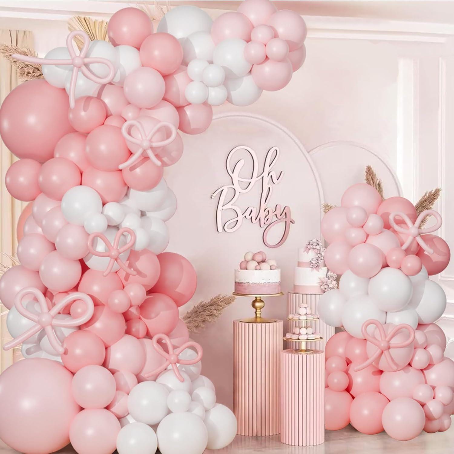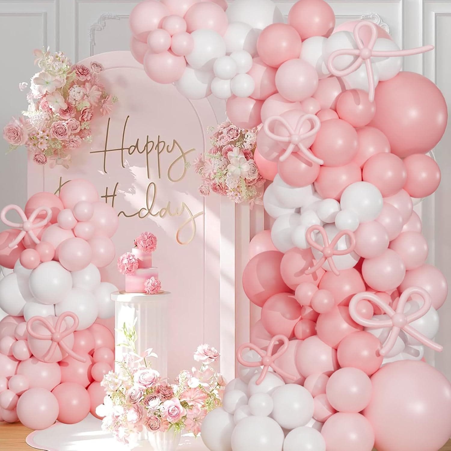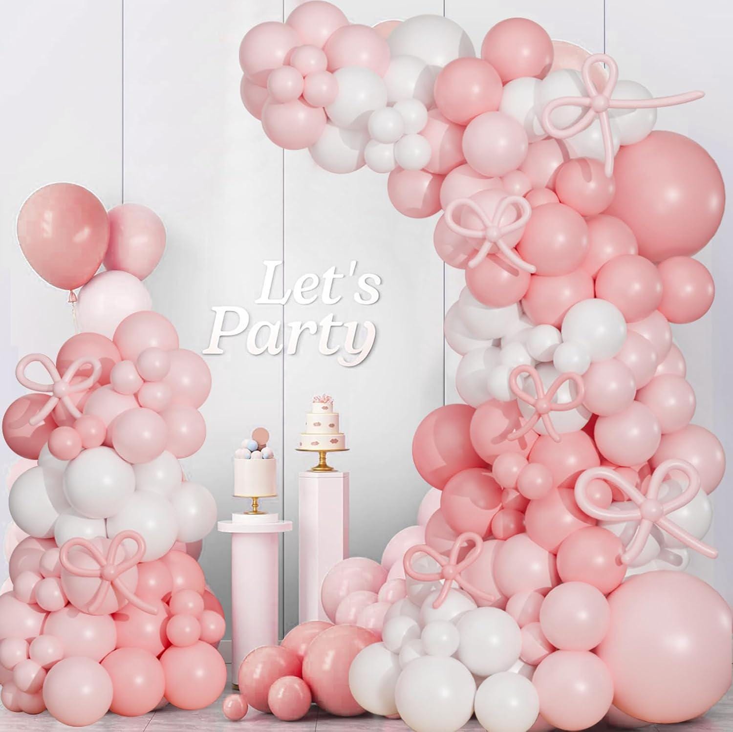 This 130-piece pink bow balloon arch kit is designed for soft, feminine setups inspired by the coquette aesthetic. Featuring layered pink tones and decorative bow-style balloons, it creates a playful yet elegant backdrop that stands out instantly.